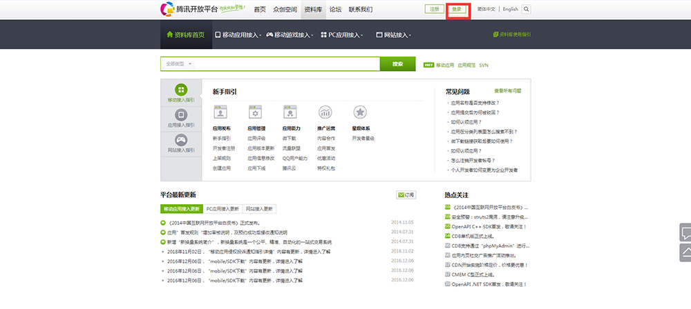 2.進入應用開放平臺,點擊右上角 “登錄”;